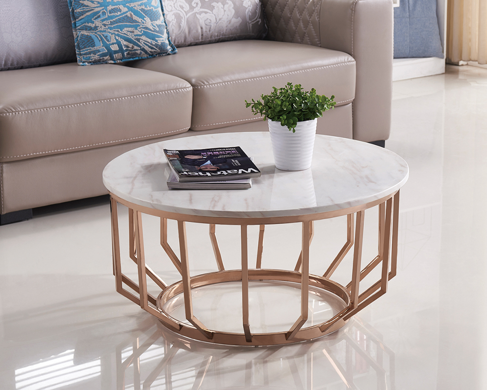 โต๊ะกลางทรงกลม ท๊อปลายหินอ่อนสีขาว
